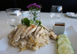 Battered crisp sole topped with mango, red onion, cashew nut, cilantro and sweet&spicy lime sauce